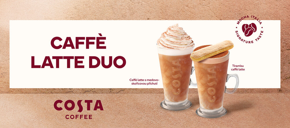 Caffè latte patří mezi nejoblíbenější mléčné kávy po celém světě. A protože kávové trendy neustále mění chuťové kombinace, my v Costa Coffee držíme krok s dobou. Na zimu jsme si pro vás připravili novinku: Caffè latte se sirupem s příchutí skořicových rolek a medu, doplněné šlehačkou a zdobené skořicovou posypkou. Spojení prvotřídního espressa ze směsi Mocha Italia, horkého našlehaného mléka a chuti medu a skořice je pro chladné dny jako stvořené. Přijďte se přesvědčit, jak může vonět a chutnat zima!
