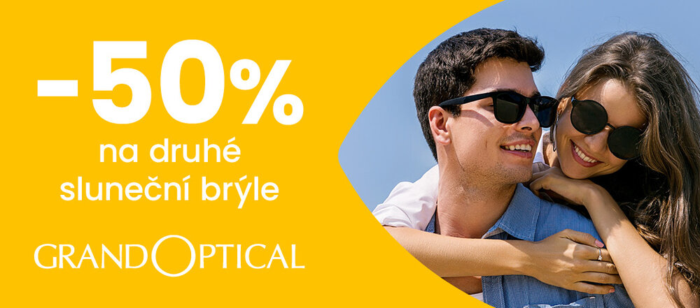 V GrandOptical na vás čekají nové kolekce mezinárodních i privátních značek, a pokud si koupíte dvoje sluneční brýle, ty levnější získáte se slevou 50 %.