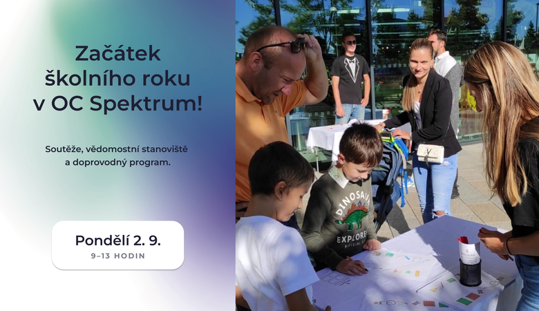 Zveme vás v pondělí 2. 9. 2024 od 9:00 do 13:00 hod. do OC Spektrum, kde na vás čeká zábavná akce k prvnímu školnímu dni! Pro všechny děti, nejen školou povinné, máme připravené zajímavé hry a soutěže o skvělé ceny.
